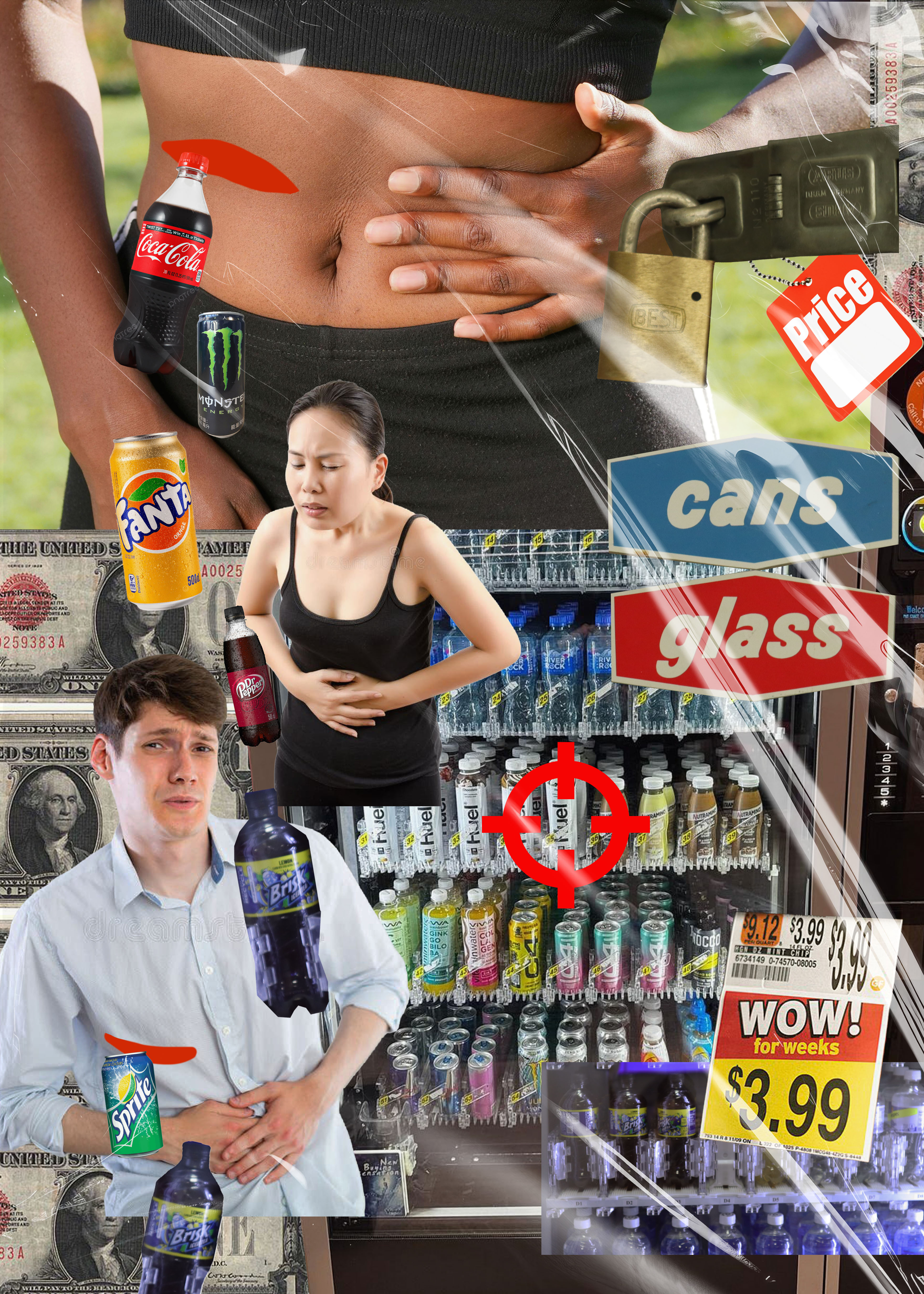 vending machine face) to add decoration around the more central stock image figures. I wanted my pessimism to come through, as well as the clear demands