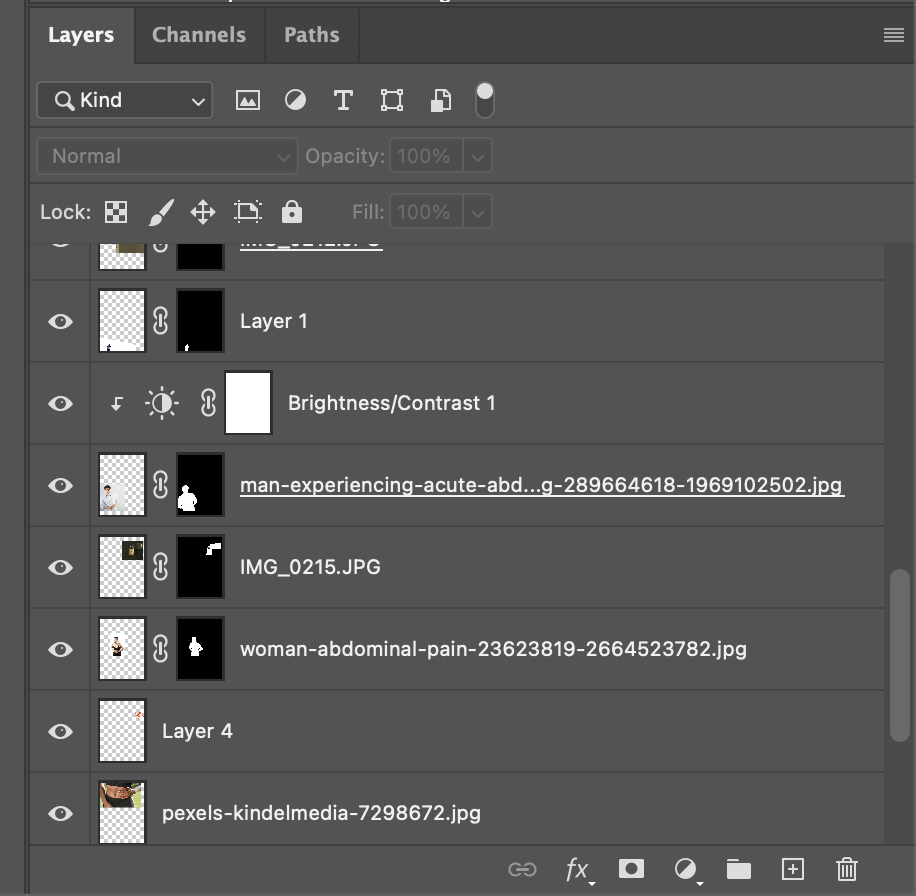 I used many, many masks to create this image. Since I was using stock photos, many came with backgrounds and I used the Photoshop "remove background" tool